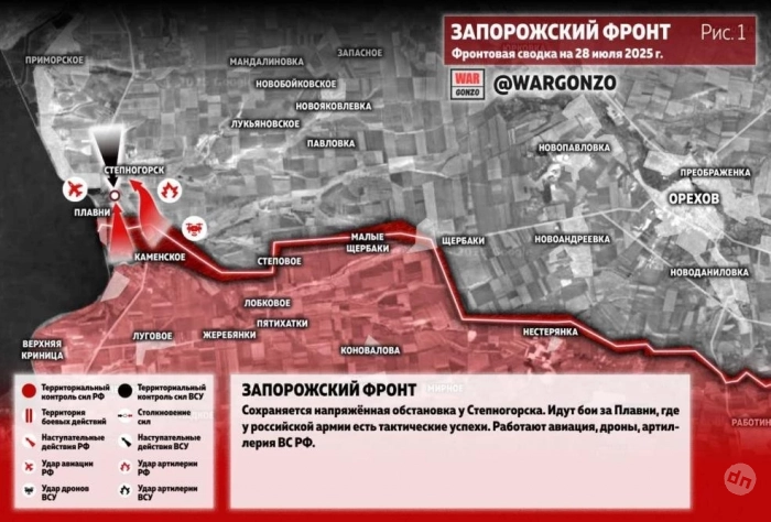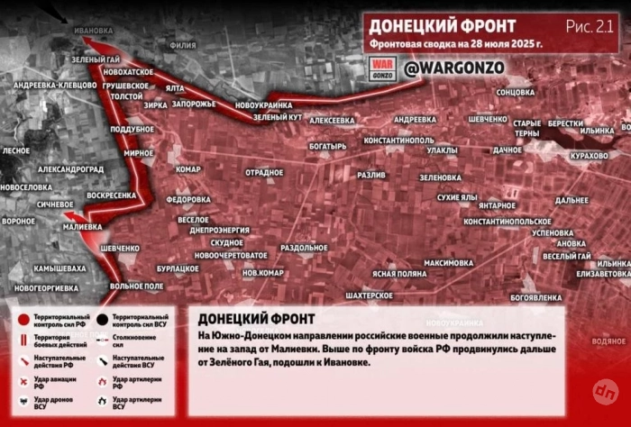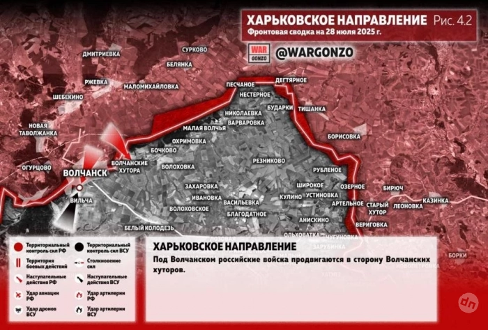 Карта боевых действий на Украине. Ситуация в зоне СВО на 28.07.2025