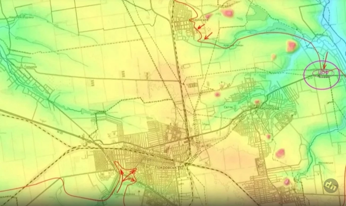 "Пока серьёзных штурмовых действий мы здесь не предпринимаем в отличии от попыток двигаться на транспортные развязки западнее города, потому что очень похоже, что наше командование не собирается брать Покровск лобовым штурмом, а будет пытаться сделать клещи, чтобы противник из города побежал. При этом не только из Покровска, но и из Мирнограда, где наши части из Новоэкономического зацепились за часть строений Центральной обогатительной фабрики, которая расположена северо-восточнее Мирнограда", - подчеркнул Подоляка, выделив высокую значимость занятия данной фабрики.