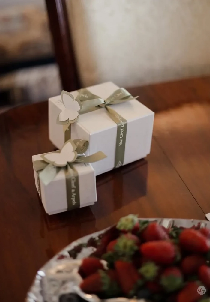 Молодожёны вместе с семьёй невесты: отцом Теймуразом, матерью Натальей и сестрой Марикой собрались на регистрации брака в Доме юстиции в Тбилиси. София надела белое платье российского бренда Roseville[b][/b]и шляпу с вуалью, дополнив образ жемчужным ожерельем, сумкой и поясом Chanel.