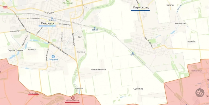 В сегодняшней сводке Минобороны РФ сообщили, что наши бойцы освободили Новоукраинку. Это маленькое село расположено в трех километрах от Красноармейска на автотрассе Е50. Рядом находится и Бельгийка, которую освободили чуть раньше.