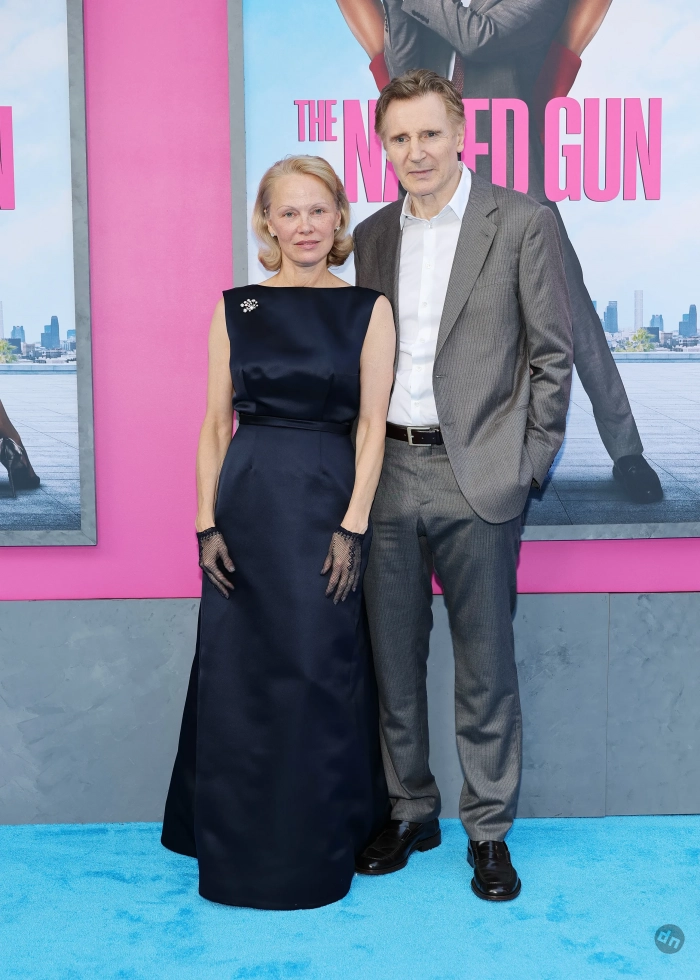 Лиам Нисон и Памела Андерсон на постере фильма "Голый пистолет"Памела Андерсон была замужем пять раз, два из которых за Риком Саломоном. У неё двое взрослых сыновей от первого мужа, Томми Ли. У Нисона также двое взрослых сыновей от покойной супруги Наташи Ричардсон. Она умерла в 2009 году, и после этого актёр больше не женился.