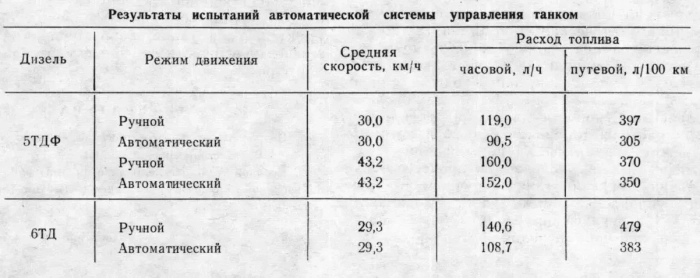 В итоге выяснилось, что при движении танков (ну, например, колонны) со скоростью 25-30 километров в час, автоматическая система снизила расход топлива на 15-20 процентов в зависимости от условий. То есть, фактически, оборудованное автоматической системой управления подразделение танков будет иметь на 15-20% больший запас хода от одной заправки.