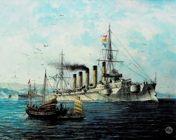9. Эскадренный броненосец «Орел» 1905 г. Бумага, темпера, гуашь, 43х39, 2005 г.