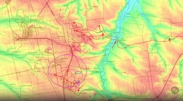 Также бойцы ВС РФ продолжают движение вперёд в районе Вольного и Новое Шахово. Первый населённый пункт уже наполовину под контролем ВС России, тогда как Новое Шахово взято в плотное кольцо окружения.