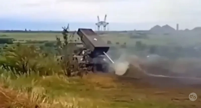 Судя по всему, устаревший боеприпас не только не сумел вылететь из направляющей шахты, но и взорвался. На это указывает характерный столб пыли на месте его падения. Тогда ВСУ с успехом избавились от еще одного образца ненавистного им советского наследия в виде РСЗО. Ну или сильно ее повредили.