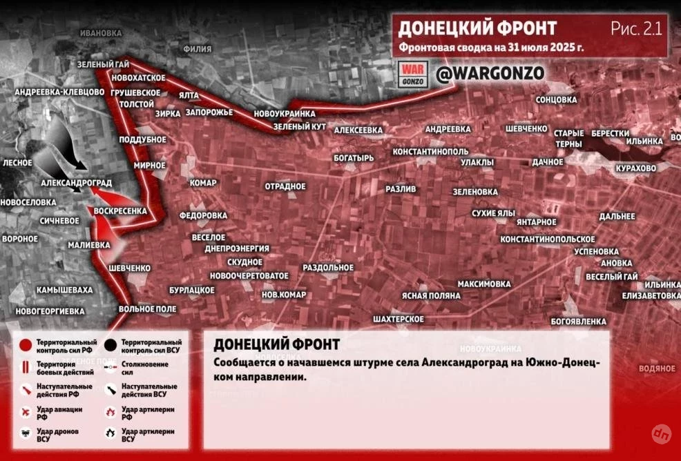 Карта боевых действий на Украине. Ситуация в зоне СВО на 31.07.2025
