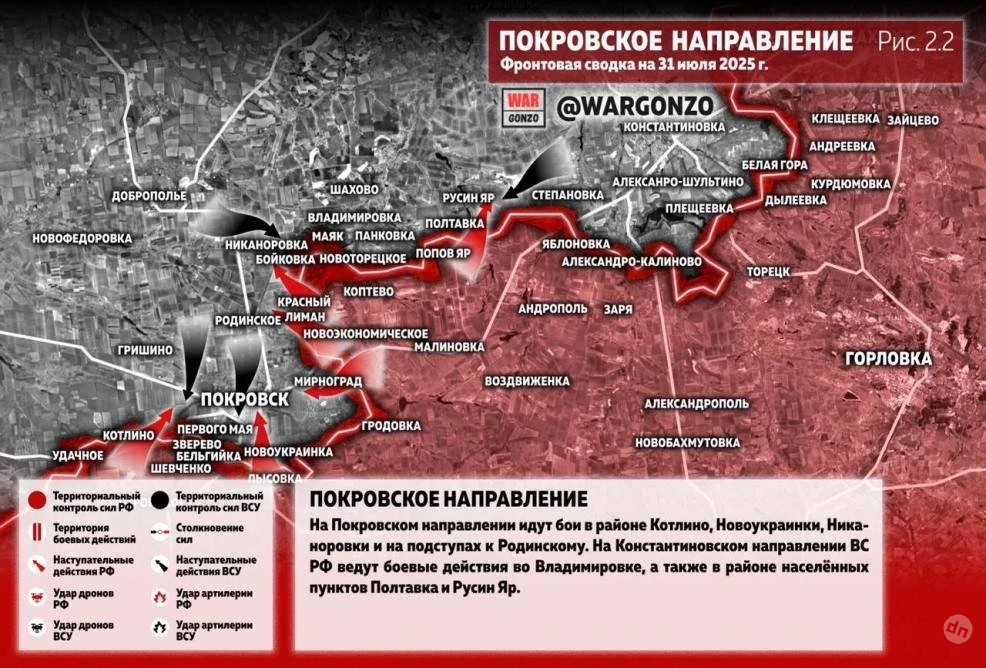 ВС РФ ведут ожесточённые бои под Котлино на Покровском направлении: свежие данные на 31.07.2025
