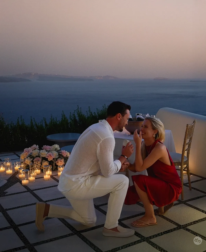 Предложение Ченнинг сделал во время романтического ужина на Санторини (Греция). Элиза поделилась серией снимков, на одном из которых запечатлено обручальное кольцо с крупным бриллиантом, на другом — сам момент, когда Миллерд встал на одно колено и сделал ей предложение руки и сердца. "Навеки вечные", — подписала она публикацию.