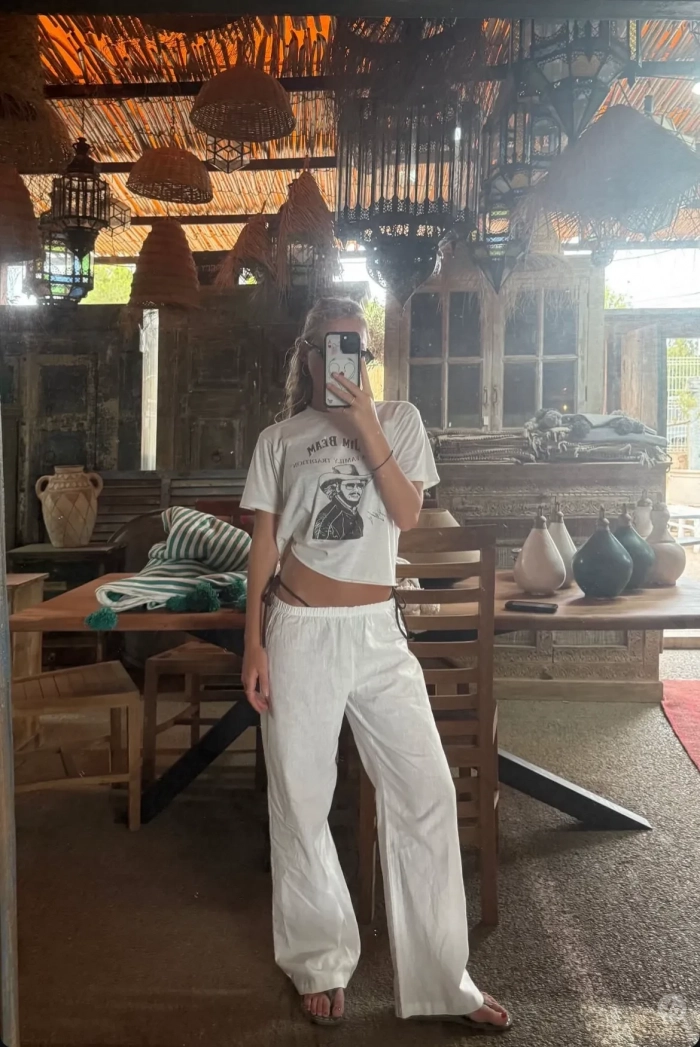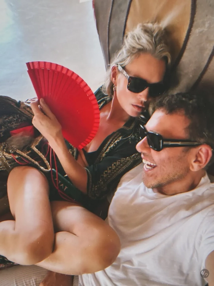 На фото супермодель позирует в бассейне в леопардовых плавках, прикрывая грудь руками, а Лила тем временем отдыхает на шезлонге. Пару дней назад Мерт выложил ещё несколько фото с Кейт: на них они делают совместное селфи и модель загорает без верха.
