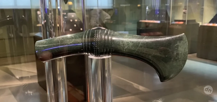 Впрочем, история — историей, но сейчас мы с вами посмотрим на экспонаты Пушкинского музея, вызвавшие именно мой интерес и определенным образом связанные с тематикой сайта. Вот, например, этот топор-молот ритуального предназначения. В пояснении написано: «Нефритоид(?), жадеитит(?), лазурит; позолота». А также вот еще что: «Ритуальные топоры-молоты были широко распространены в Европе и на Кавказе с эпохи ранней бронзы по конец II тыс. до н.э.».