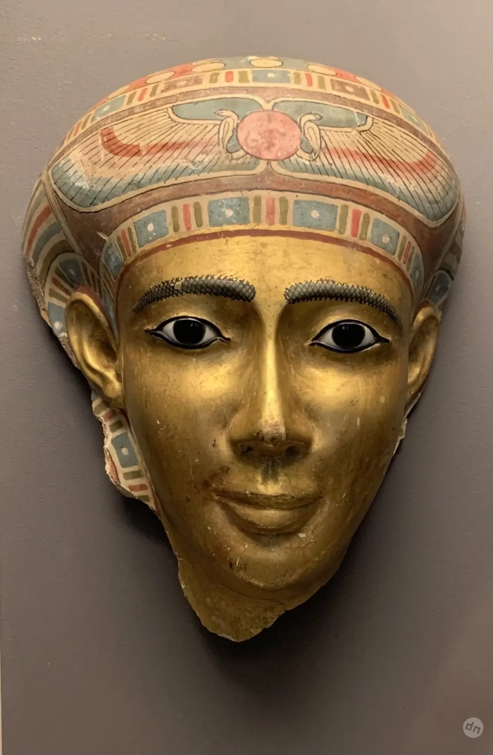 А это золотая погребальная маска женской мумии. Птолемеевский Египет, I век до н.э.