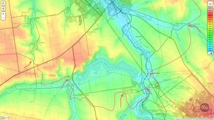 Согласно его данным, в настоящее время войска РФ переправились через реку Кривой Торец и вышли к железнодорожным путям, проходящим к северо-востоку от поселка Клебан-Бык.