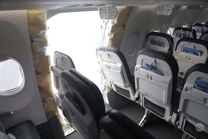 Этот рейс вылетел из Портленда, штат Орегон, 5 января 2024 года и направлялся в Онтэрио, штат Калифорния, когда на высоте около 4 800 метров от самолёта оторвалась дверь аварийного выхода, и в салоне произошла разгерметизация. Четыре члена экипажа (два мужчины и две женщины) получили физические и психические травмы, эмоциональный стресс.