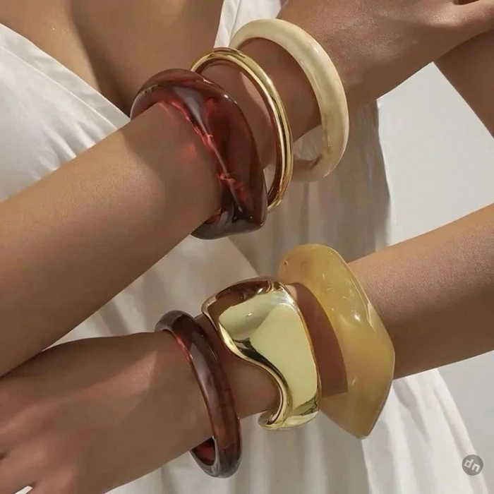 Кольца и браслеты из акрила, смолы и пластика уже несколько сезонов подряд находятся на пике популярности. Сегодня это не просто милые безделушки, а полноценные элементы стиля — будь то дневной образ или вечерний выход. Они легкие, удобные, броские — и, главное, создаются из переработанных и перерабатываемых материалов, что делает их еще и экологичным выбором.