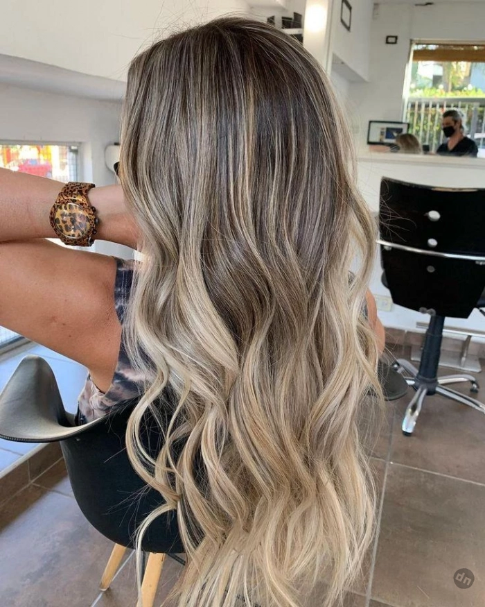 Спасение для тех, кто устал от частых окрашиваний. Темные корни плавно переходят в светлые концы, придавая волосам объем и глубину.