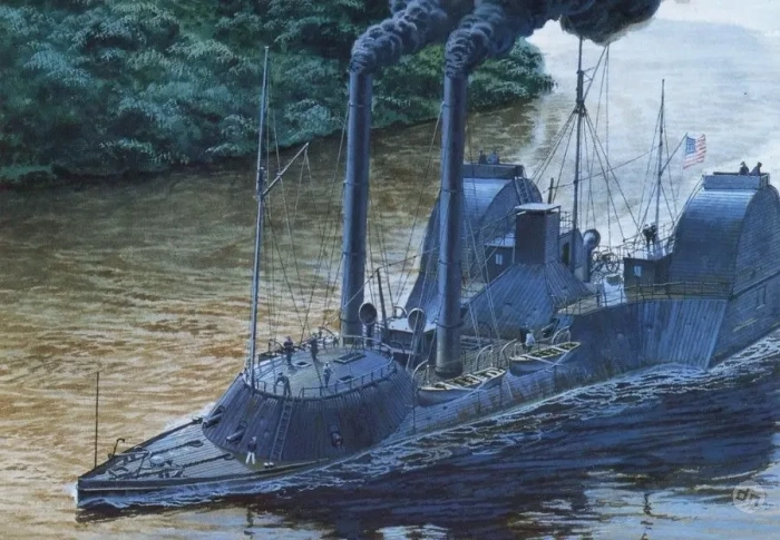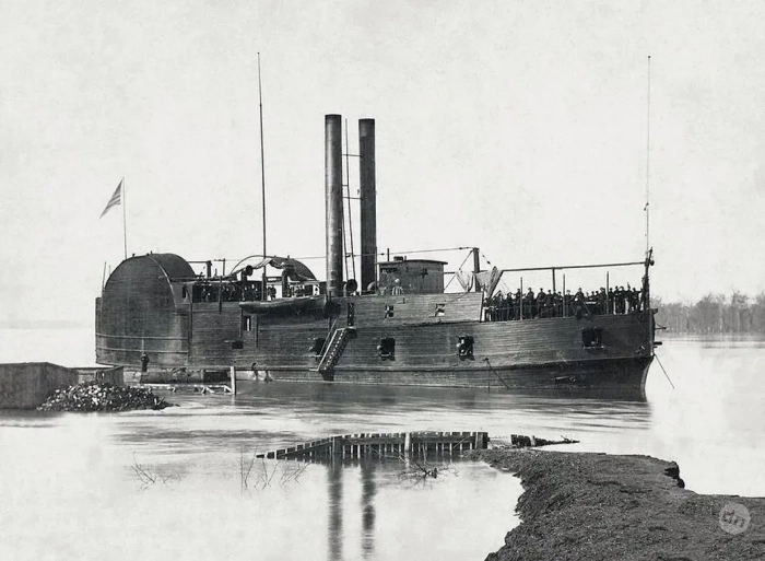 Конечно, многие из них, как и раньше, продолжали возить хлопок и разные другие грузы теперь уже военного назначения. В принципе, превратить миссисипский пароход в боевое судно было нетрудно. Достаточно было срезать надстройки двух верхних палуб, возвести на том, что осталось, баррикады из мешков с песком и поставить за ними артиллерийские орудия, те же, скажем, гладкоствольные «наполеоны», которые были на вооружении как северян, так и южан.
