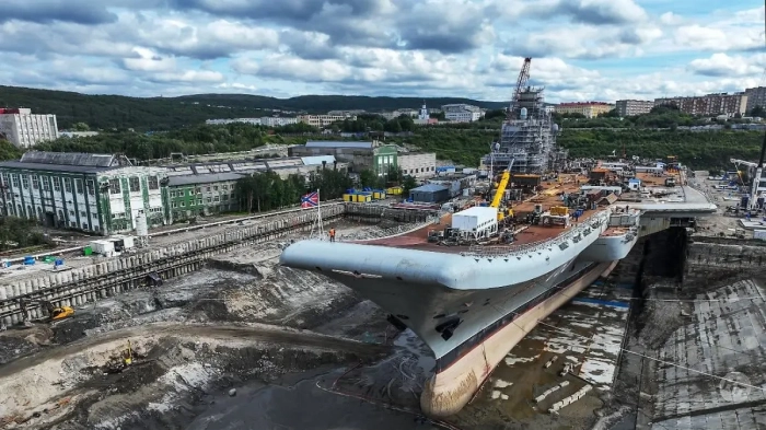 21 февраля 2023 года бывший крейсер, а теперь легкий авианосец «Адмирал Кузнецов» вышел из сухого дока 35-го судоремонтного завода и встал у стенки. Ремонтные и модернизационные работы должны были продолжаться у достроечной стенки до 2024 года.