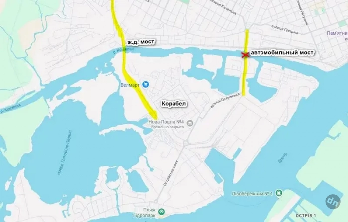 Карантинный остров отделен от города рекой Кошевая, впадающей в Днепр. Через реку ведут два моста: железнодорожный и автомобильный, по которому вчера и сегодня прилетело. Пока по состоянию моста информации нет, но подконтрольные Киеву «власти» Херсона заявляют, что попасть на остров стало гораздо труднее.