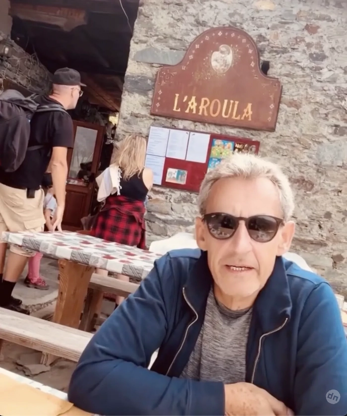 Супруги, которые женаты с 2008 года и воспитывают 13-летнюю дочь Джулию (она любит наращённые ресницы и яркий макияж), остановились в отеле Hotellerie de Mascognaz в городе Камполук. В ролике Карла, сидя в местном заведении, снимает себя и улыбается, а после переводит камеру на 70-летнего мужа.