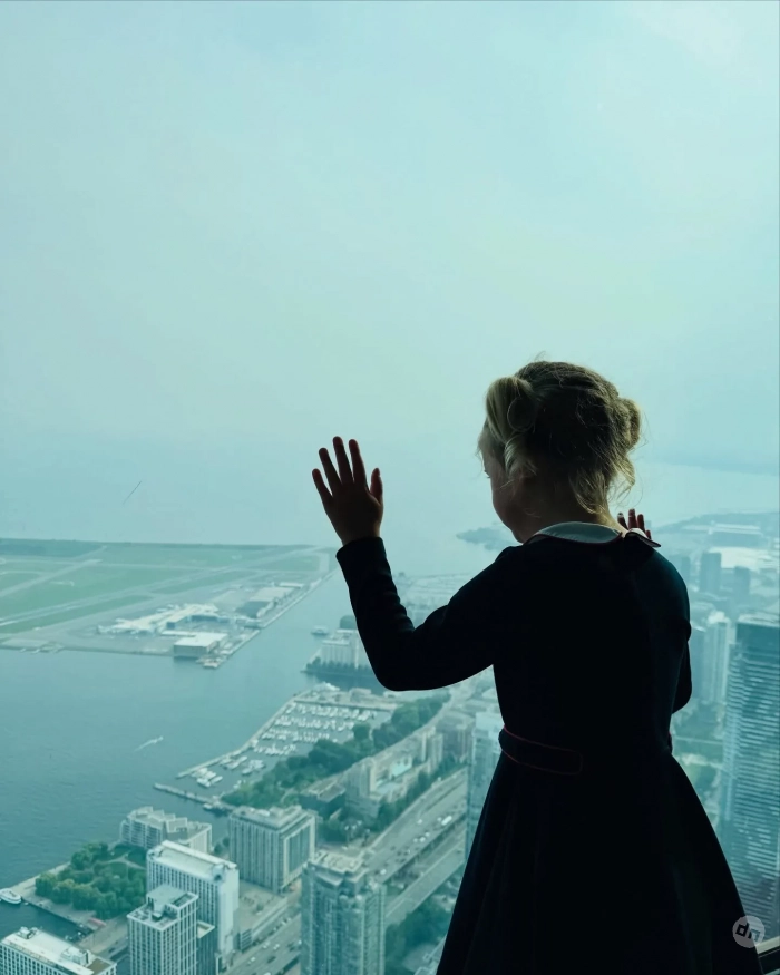 На снимке Дейзи позирует на фоне городского пейзажа спиной к фотографу. Орландо и Кэти практически не показывают лицо дочери, но совсем недавно они впервые показали девочку крупным планом во время полёта Перри в космос.