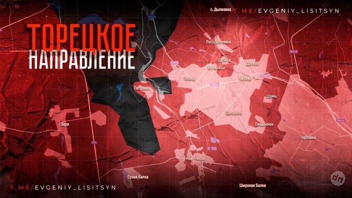 На Северском направлении ВС РФ укрепляют позиции западнее Новосёлки. Бои идут также в районе Ивано-Дарьевки и Выемки и южнее Серебрянки. Продвижение на этих участках позволит создать давление на гарнизон противника в Северск с трёх сторон.