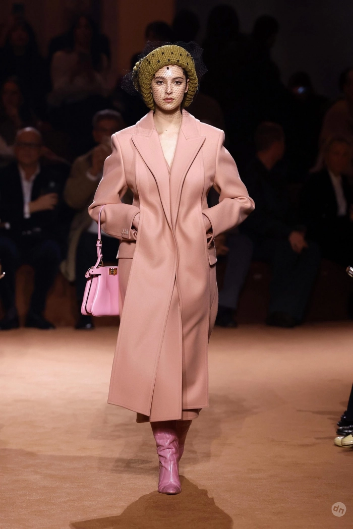 Модный Дом Fendi предлагает не бояться цвета и носить йогуртово-розовый с головы до ног — пальто, сапоги, сумка, платье. Такой образ выглядит свежо, дерзко и абсолютно по-осеннему, если дополнить его объемными тканями: кашемиром, замшей, зернистой кожей. А для тех, кто не готов к полному розовому погружению, Fendi рекомендует ввести цвет в образ аккуратными акцентами — например, надев светло-розовый верх к темно-коричневым брюкам. Эта пара создает сбалансированный и изысканный контраст.