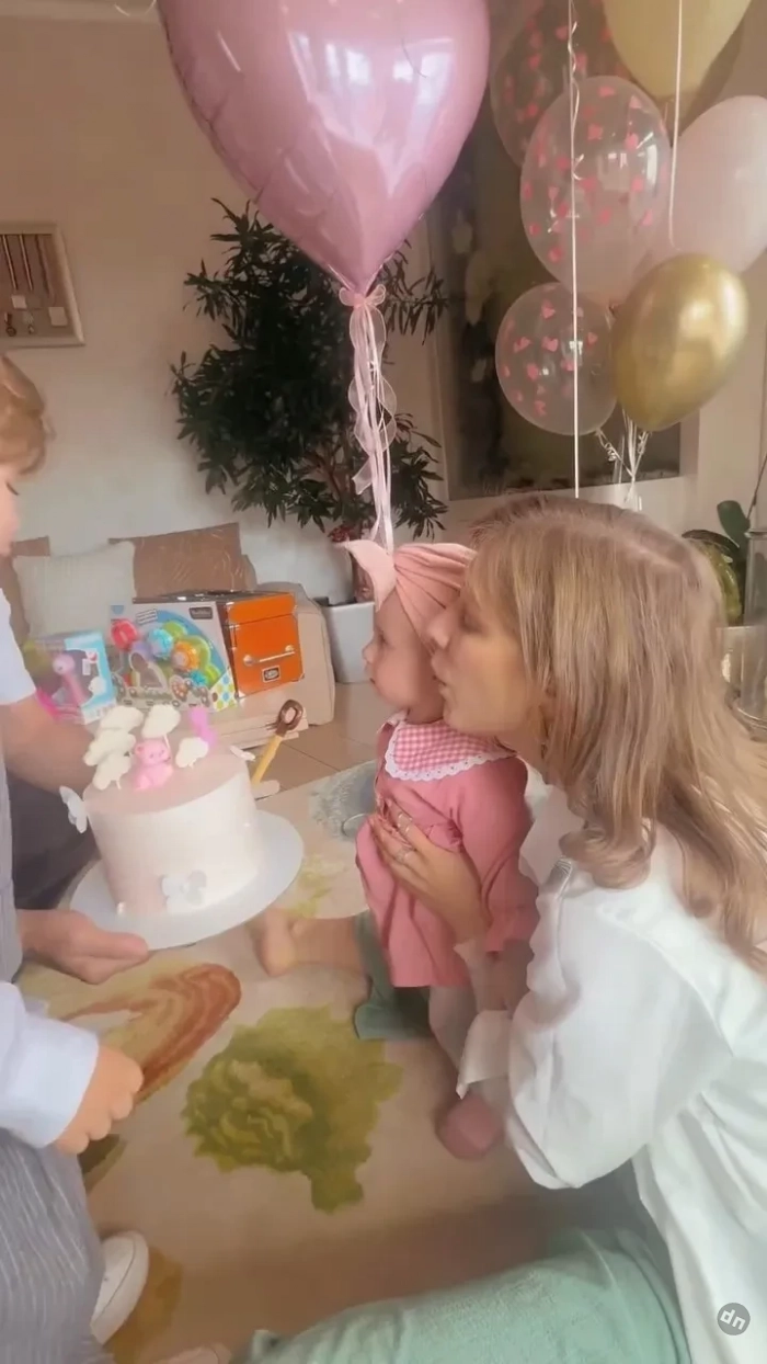 Позже она опубликовала видео, в котором её муж, 51-летний Илья Авербух, сын Лев и она сама поздравляют Лию с днём рождения: они украсили комнату шариками, а также задули свечи на праздничном торте розового цвета.