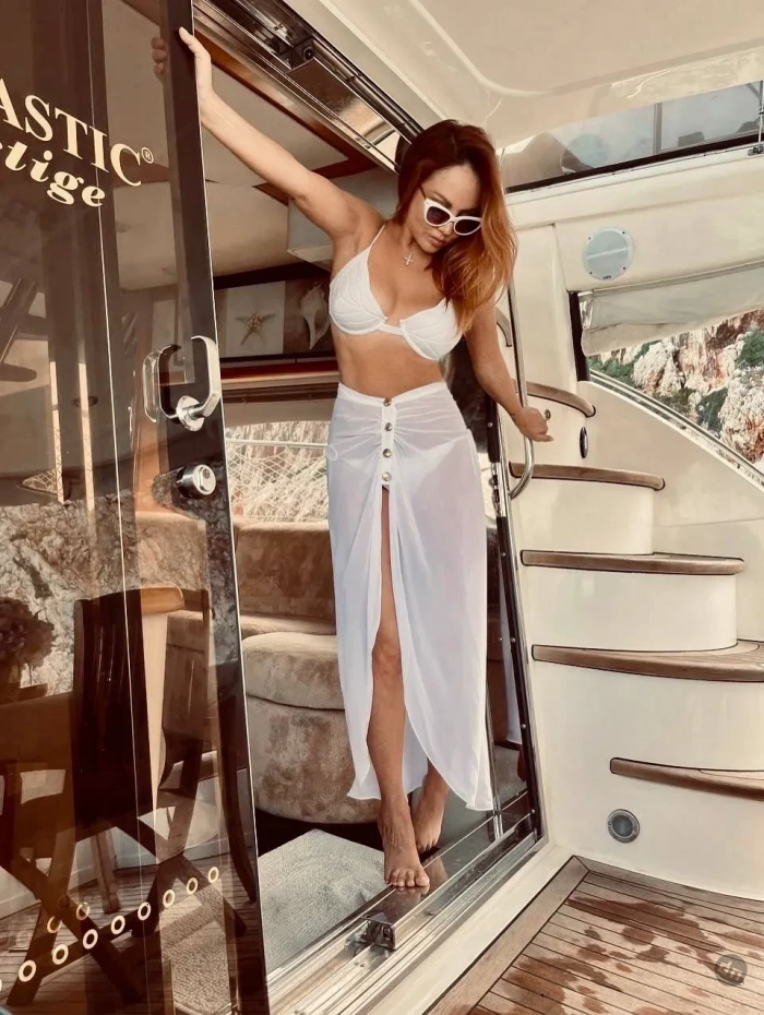 На снимках она позирует на фоне моря и на палубе. Также она добавила снимок, на котором позирует вместе с подругой на носу яхты. "Белые выходные", — подписала 42-летняя певица снимки.