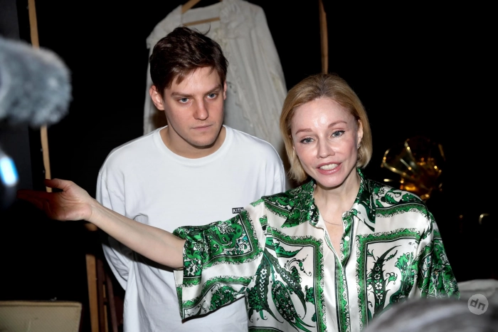 Мария выбрала для мероприятия чёрный костюм из жилетки и юбки-миди. Большую часть времени она держалась рядом с бабушкой, Ириной Зудиной, но и не упускала возможности позировать фотографам в одиночестве.