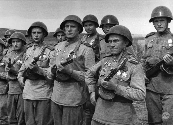 Группа бойцов РККА, прибывших на Дальний Восток. Август 1945