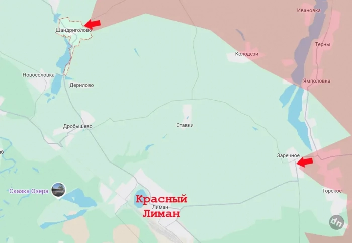Дело в том, что продвижение армии России идёт не только севернее Красного Лимана, но и восточнее. Как уже сообщало «Военное обозрение», ВС РФ форсировали реку Жеребец и вошли в пгт Заречное, что в 8 км к востоку от города.