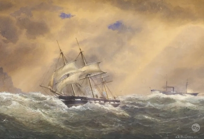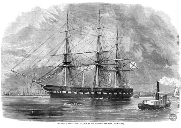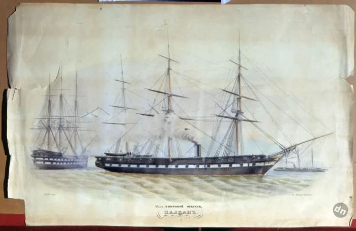 Фрегат стал прямым опровержением максимы капитана Врунгеля «как вы судно назовёте, так оно и поплывёт», но начнём с начала. Русское Морское ведомство заказало верфи «Колло и Компания» из Бордо фрегат и корвет в июне 1856 года. О корвете, получившем имя «Баян», я уже рассказывал, а фрегат по контракту должен был обойтись казне в 2800000 франков (каждый день задержки карался штрафом в 500 франков). Но Колло разорился и верфь продал инженеру Арману вместе с русскими заказами, а тот выставил дополнительный счёт ещё на 1130000 франков. Впрочем, сторонам удалось полюбовно договориться, и Арман получил ещё один заказ — на императорскую яхту «Александра» (впоследствии переименованную в «Штандарт»).