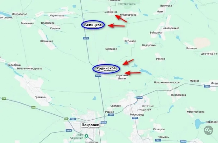 Противник признаёт выход ВС РФ на окраины расположенных к северу от Покровска городов Родинское и Белицкое