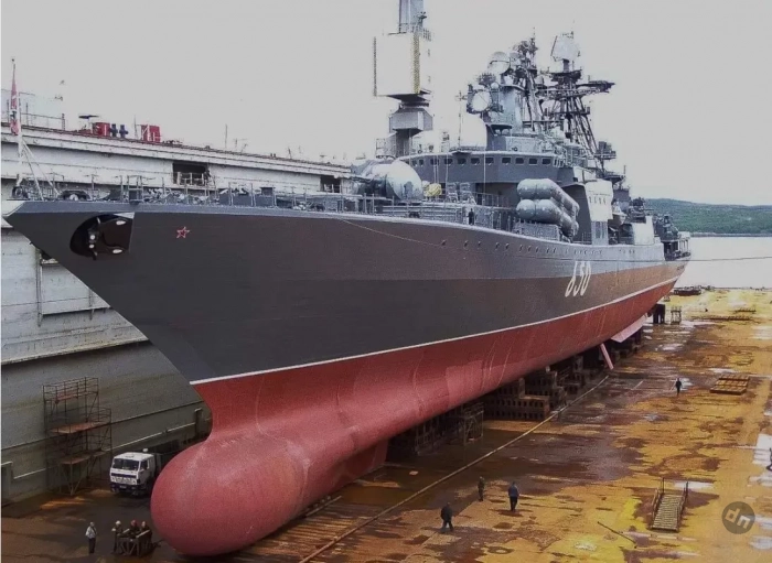 Корабль находится в ремонте на 35-м СРЗ с 2014 года, и оптимизма в постоянных переносах сроков вправо не наблюдается. Капитальный ремонт и не менее капитальная модернизация должны были завершиться в этом, 2025 году, но… Многие источники говорят о том, что этого не произойдет, и никто не берется назвать точные сроки окончания работ и начало испытаний и приемки.