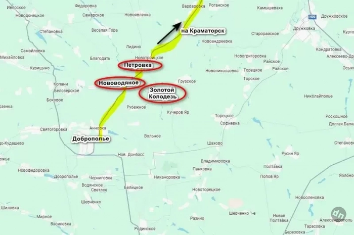 Кроме того, противник подтверждает перерезание ВС РФ трассы Доброполье - Краматорск. По его информации, часть российских подразделений закрепилась в районах Нововодяного и Петровки, таким образом уже беря в полуокружение и Доброполье.