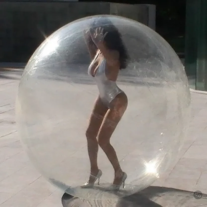 30-летяя жена Канье Уэста Бьянка Цензори опубликовала снимки с новой фотосессии, в которой предстала в серебристом боди и на каблуках. На фото она позирует, сидя на полу заднего двора частного дома. На части фото она также запечатлена внутри прозрачного "пузыря".