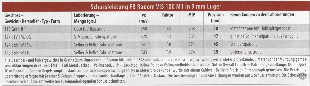 Пистолет VIS 100 M1 представляет из себя интересный образец оружия, отражающий современное состояние польской оружейной промышленности. Он объединяет консервативные и инновационные технические решения. Цена в Германии составляет 1119 евро. Это, с одной стороны, нормально для пистолета с металлической рамкой и SA/DA спуском. С другой стороны, на рынке господствуют полимерные пистолеты с ударниковым УСМ. Поэтому коммерческие перспективы VIS 100 M1 можно назвать неоднозначными.