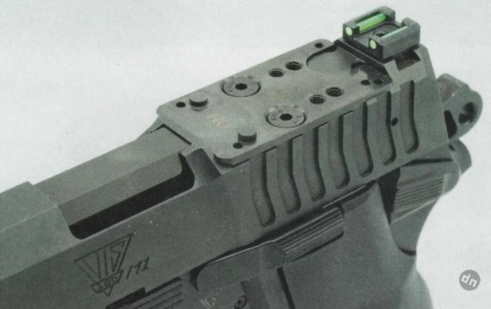 Затвор — стальной. На тыльной его части имеется посадочное место для установки коллиматорного прицела. Причем, в отличие от других Optic Ready-пистолетов, на VIS 100 M1 не требуются различные адаптеры. Вместо этого имеется одна пластина-адаптер с несколькими резьбовыми и штифтовыми (диаметра 3 и 3,9 мм.) отверстиями, обеспечивающими установку разнообразных моделей прицелов, таких как Burris, Docter, Vortex, Shield. В общем случае посадочное место закрыто пластиной-крышкой.
