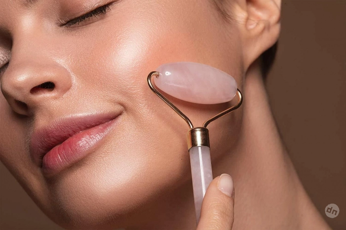 Роллер из нефрита или кварца — прокатывайте от носа к вискам и от подбородка к ушам.