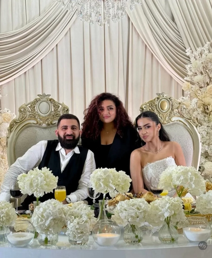 На сцене выступали рэпер Баста (настоящее имя — Василий Вакуленко), Зара, Navai и Сосо Павлиашвили. Гостей, среди которых были замечены комики Алексей Щербаков, Азамат Мусагалиев и Иван Абрамов, а также звёздный визажист Гоар Аветисян, угощали виски Macallan (по 10 тысяч рублей за бутылку). Невеста сменила несколько нарядов. Стоит также отметить, что празднование растянулось на несколько дней, а часть церемонии прошла в соответствии с езидскими традициями.