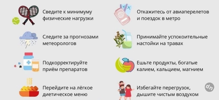 Врачи советуют в подобные дни минимизировать физические нагрузки, правильно питаться и полностью отказаться от любых вредных привычек, дабы не спровоцировать ухудшение самочувствия.
