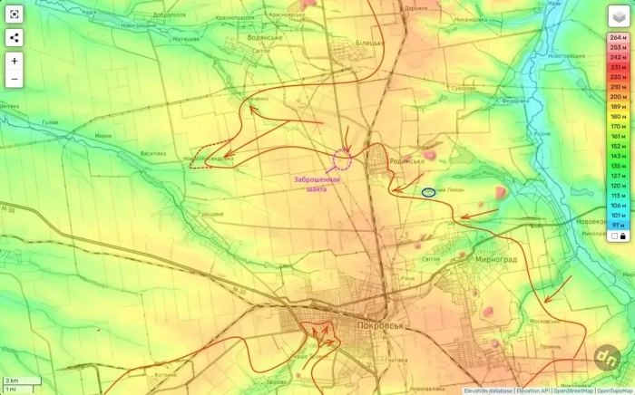 На Покровском направлении на участке Родинское - Белицкое - Шевченко продолжаются интенсивные боевые действия. Российские войска избегают прямого лобового штурма укреплённого Родинского, сосредотачивая усилия на фланговых манёврах, зачистке окрестностей и захвате важнейших рубежей в районе Красного Лимана.