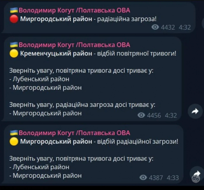 По словам Когута, в Миргородском районе Полтавщины объявлена радиационная опасность.