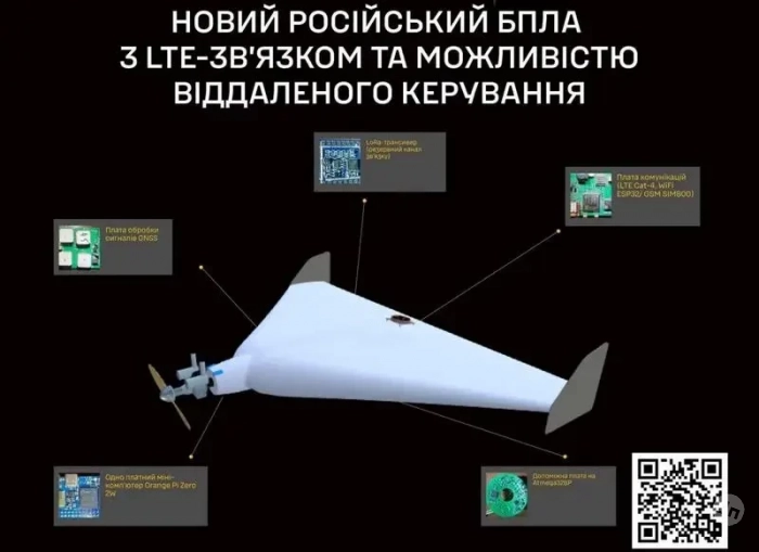 Новая модель поставила военную разведку в тупик своим предназначением. Как предполагают украинские эксперты, новый дрон может применяться в качестве разведывательного, ударного или ложной цели. Он оборудован камерой и двумя LTE-модемами, позволяющими передавать видео в реальном времени. Это говорит о том, что оператор может управлять им, задавая новые координаты или меняя курс. Беспилотник может передавать разведывательную информацию или наводиться на цель.