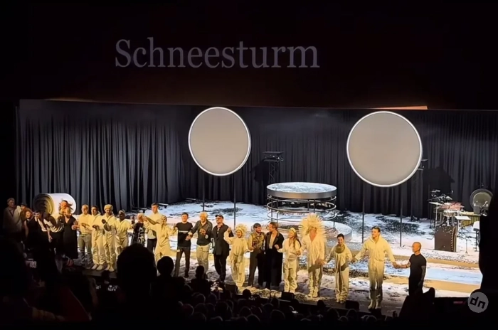 "Метель, которая может возникнуть в любой момент и остаться с тобой навсегда. Но и тут есть шанс выжить, хотя Метель всегда была и будет больше всех наших планов и желаний (орфография и пунктуация автора сохранены. — Прим. ред.)", — добавила Собчак и отметила, что испытывает "отдельное чувство гордости" за то, что сидит на "лучшем музыкальном фестивале планеты" и смотрит постановку русского режиссёра по книге "великого русского писателя Владимира Сорокина".