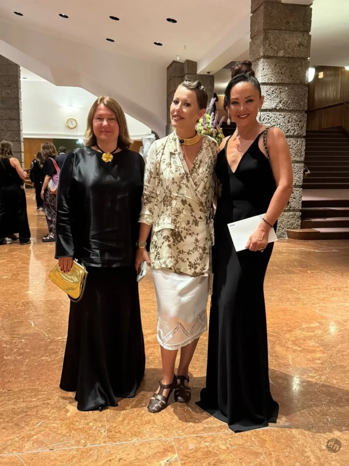 "Поздравляю всю команду Кирилла: блестящая работа Филиппа Авдеева в роли Перкуши, похудевшая и искрящаяся Варвара Шмыкова, любимая Ян Гэ, погружающая своим пением в транс. Какое счастье было вас всех обнять и увидеться!" — написала Собчак.