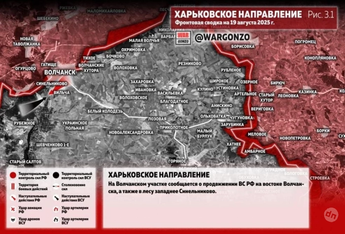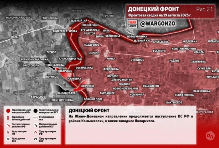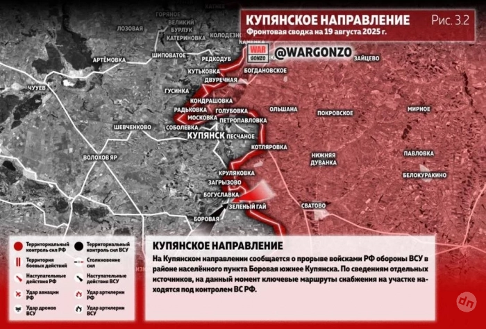 Карта боевых действий на Украине. Ситуация в зоне СВО на 20.08.2025