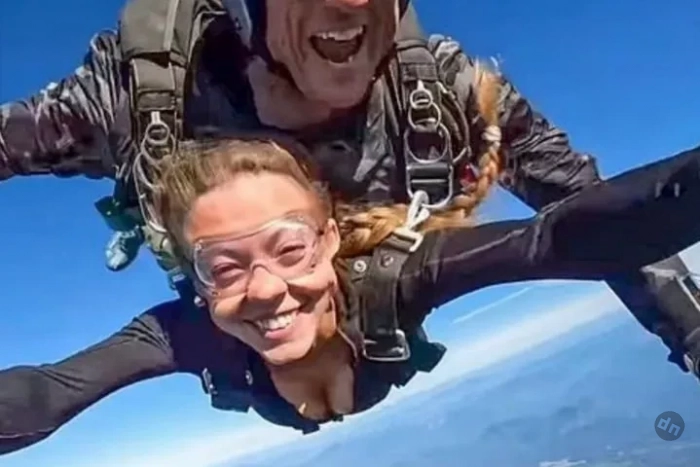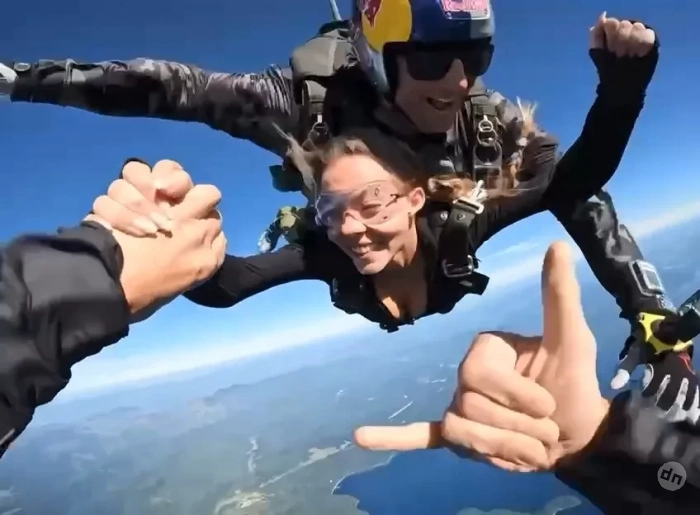 "Летающие соски". Сидни Суини раскритиковали за то, что она прыгнула с парашютом в костюме с глубоким декольте