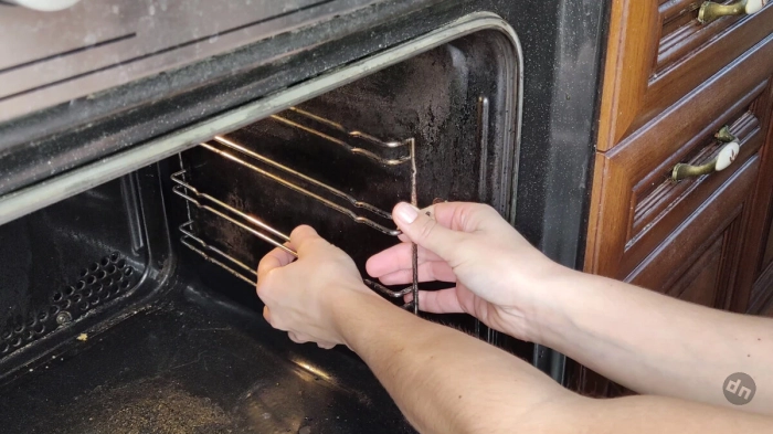 Если дверца духовки съемная — её тоже лучше разобрать и тщательно промыть. При желании можно даже отвинтить заднюю стенку, чтобы почистить вентилятор.