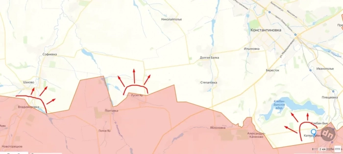 Так, согласно сообщению Минобороны РФ, сегодня нашим бойцам удалось потеснить противника сразу из трёх сёл на Константиновском направлении. Речь идёт о Владимировке, Катериновке и Русином Яре.